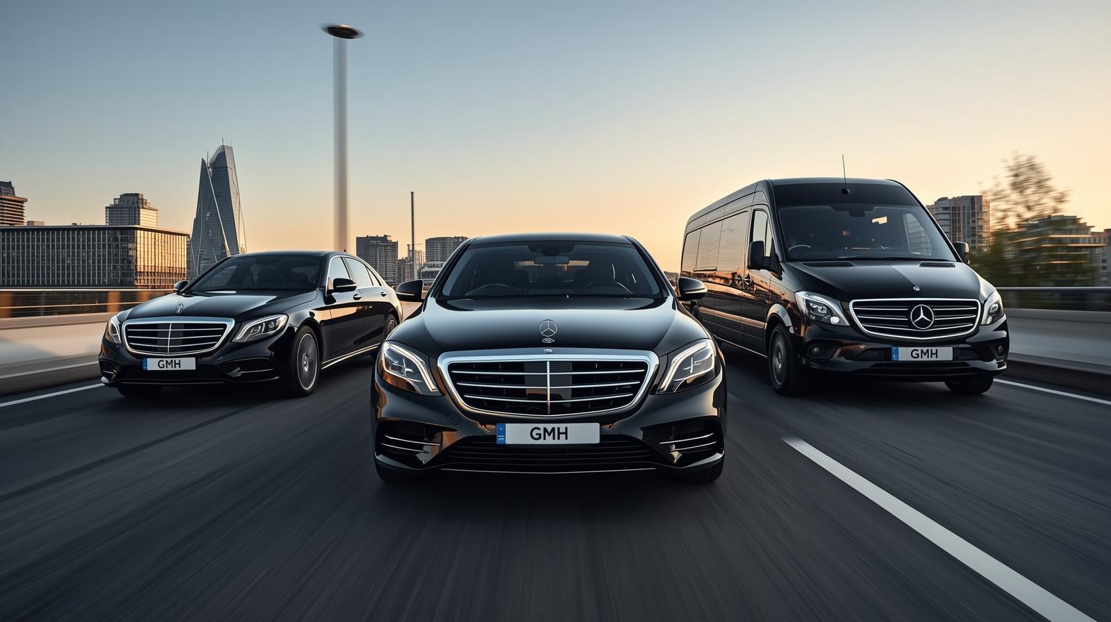 Travel comfortably in Mercedes-Benz S, E, or V Class vehicles with onboard amenities.